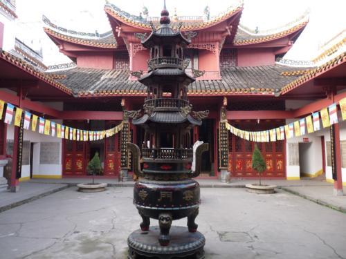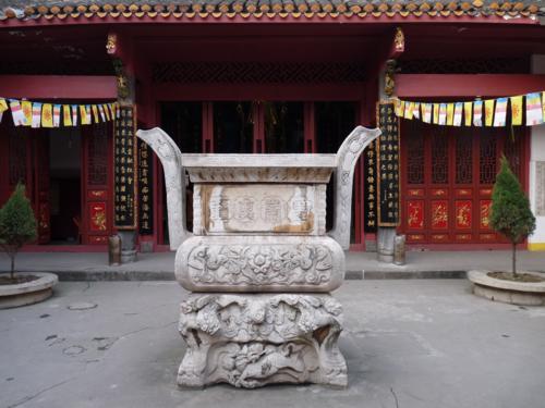观音阁前正中有清乾隆二十六年(1761年)雕汉白玉长方香炉一座,高1.8米,长1.35米,宽O.85米炉身四周有盘龙、麒麟、福、禄、寿三星、二狮滚球、二龙戏珠、双凤朝阳浮雕及“圣寿无疆”篆字图像生动,篆刻官正