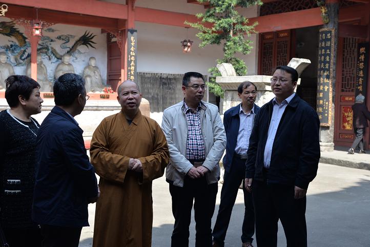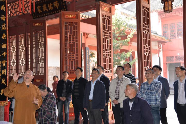 2017414日上午,省政协民宗委驻会副主任梁志强等领导一行七人来到本寺视察调研工作。湘乡市委常委、副市长曾利民,市政协刘鹤群副主席等领导陪同调研。本寺方丈法通大和尚热情接待并汇报相关工作。