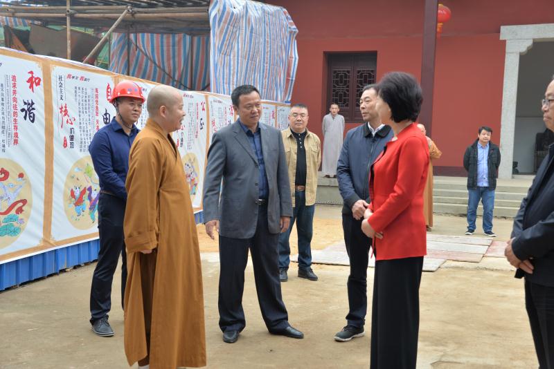 2018年10月19上午,省委常委、省统战部长黄兰香,省统战部常务副部长谭平等一行来云门寺调研视察。湘潭市委常委、市统战部长杨真平,湘乡市委书记彭瑞林,统战部长彭湘等领导陪同调研。本寺方丈法通大和尚热情接待。