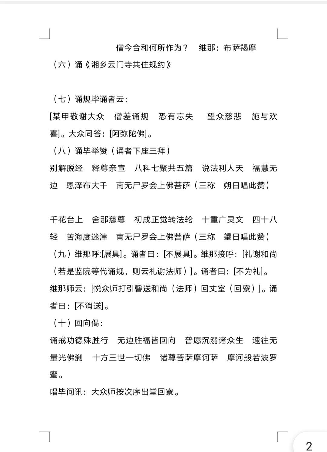 为契合寺院的实际修学情况,从2021年起,云门寺常住僧众每半月的布萨改诵《规约》,本寺所有僧众须在受持《四分律比丘戒》及《梵网经菩萨戒》的基础上,按“规约”的内容来检察和规范自己的行为。