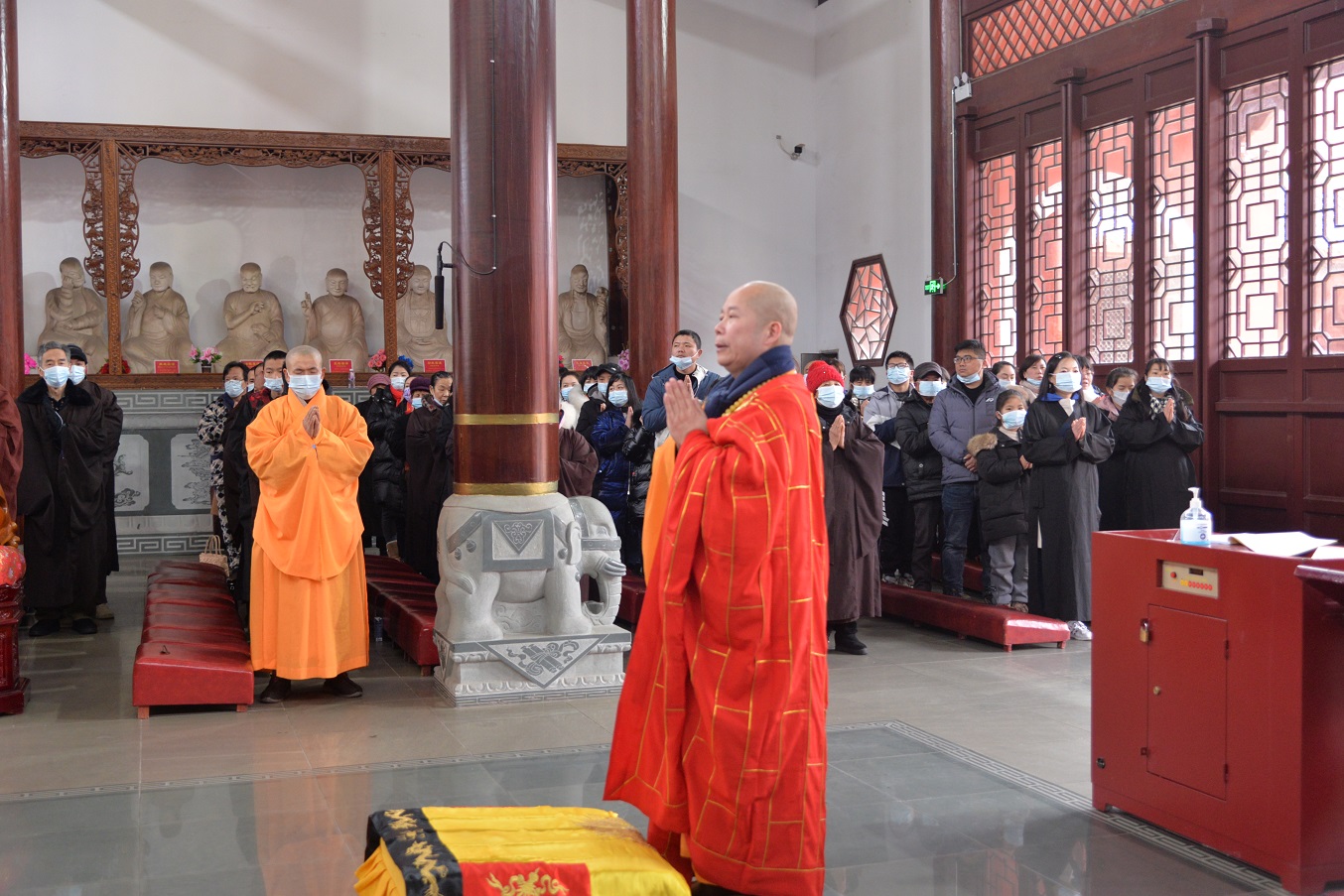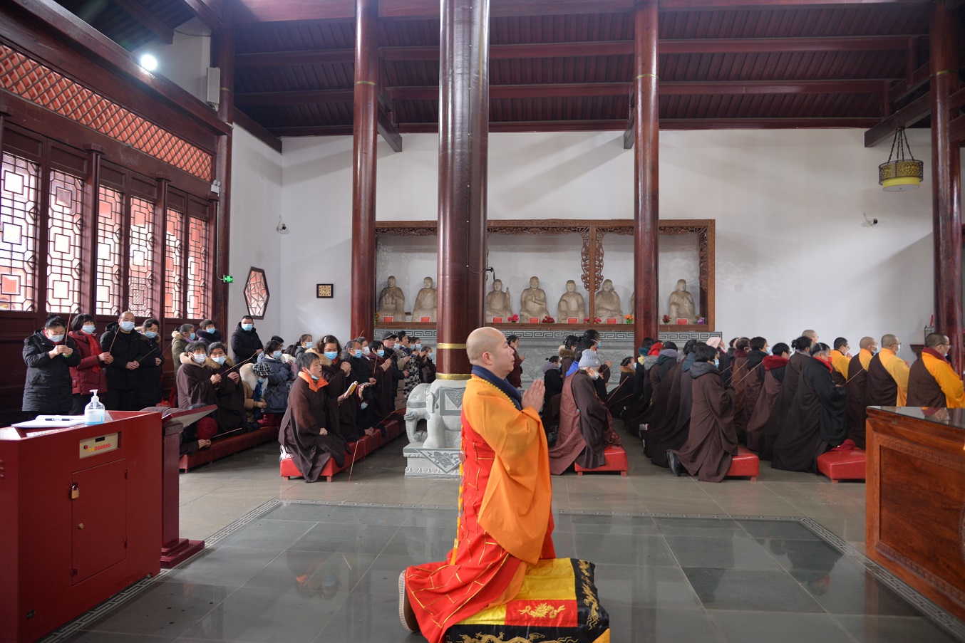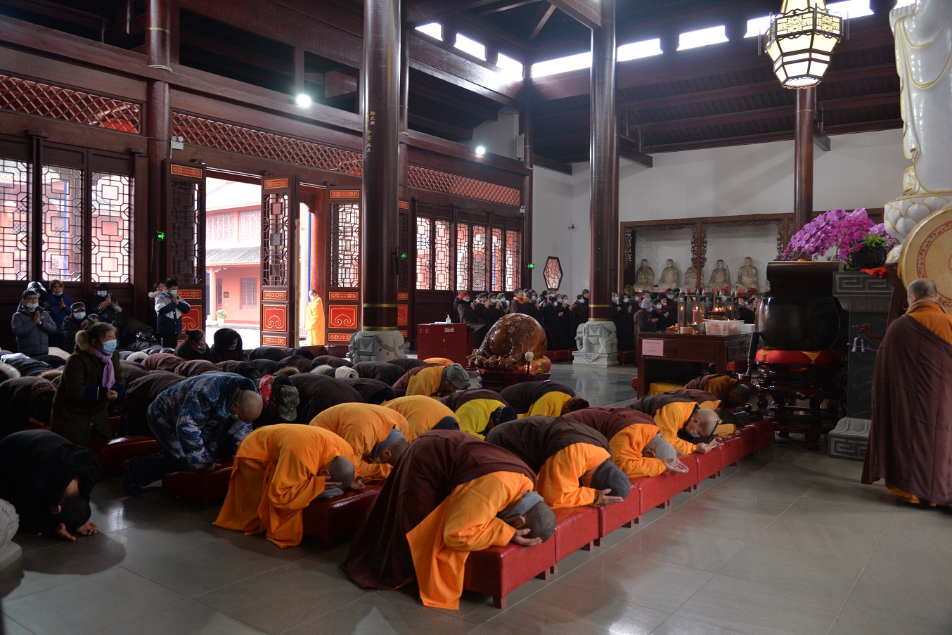 正月初九,集合湘乡市诸位高僧法师、善知识之力,虔供三宝,祈愿世界和平,众生安乐,国家风调雨顺,湘乡春花秋实、年谷顺成;也祈愿疫情早日结束,广大善信家庭美满,身心康泰,身体健康,诸事吉祥,善愿成就。