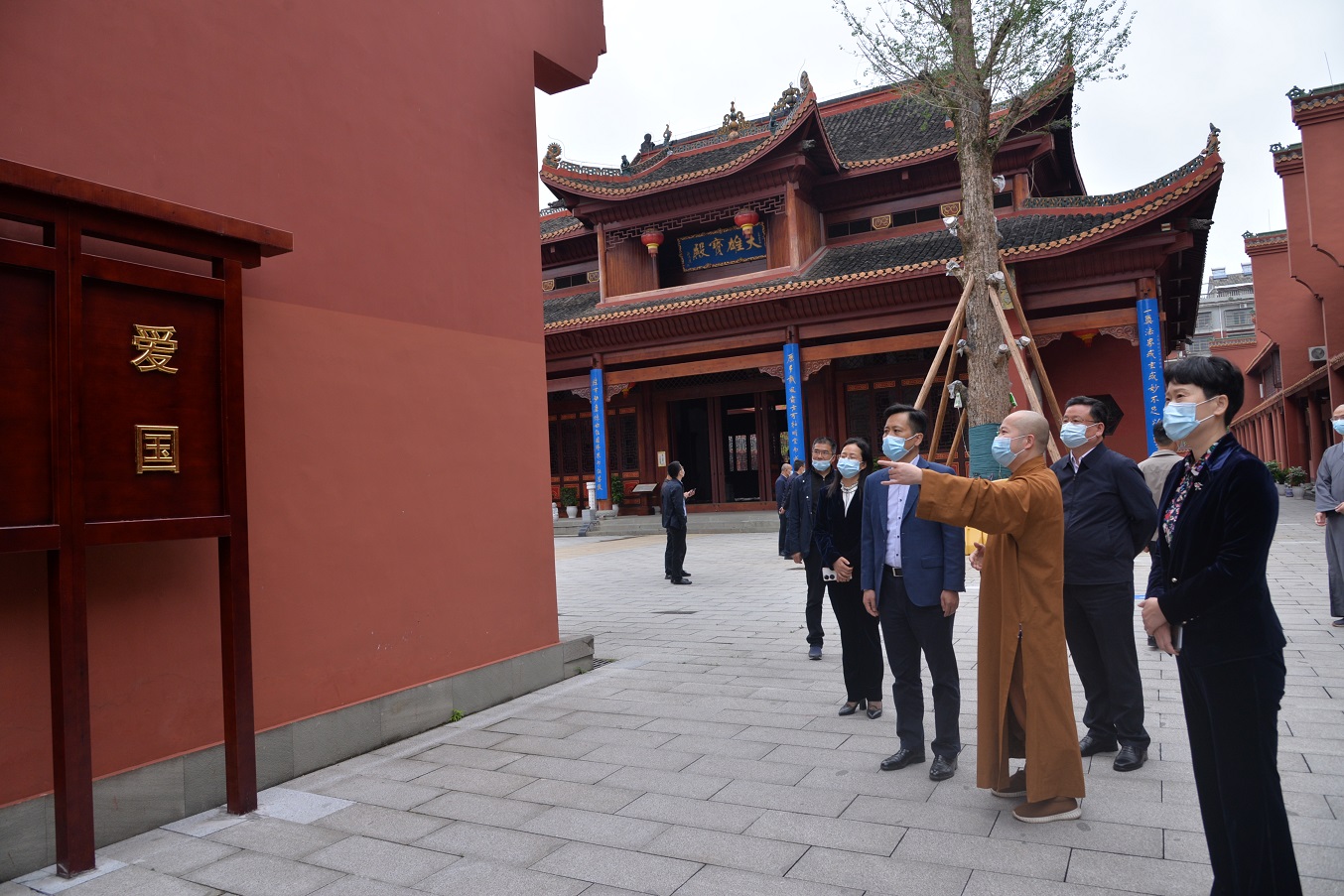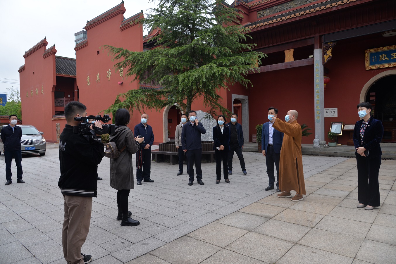 2022年4月13日上午,湘潭市委副书记、统战部长刘扬一行领导莅临本寺调研指导工作,湘潭统战部常务副部长刘慧、湘乡市委书记赵新文、统战部长侯爱萍等陪同。本寺方丈法通大和尚带领寺院主要执事热情接待了调研组一行,介绍了云门寺的消防、防疫、五进五好等工作的落实情况。 刘扬副书记认真察看了云门寺的消防、防疫等工作,并要求寺院要将消防安全工作摆在首要位置,强化隐患排查整改力度,做好消防安全教育培训工作,着力提高施工人员消防安全防范意识和火灾抵御能力。同时,主动做好疫情常态化防控工作,确保场所安全稳定。