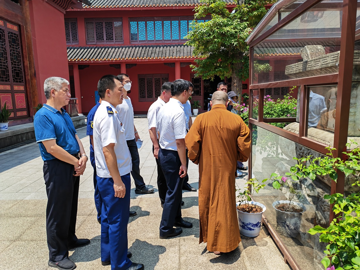 2022年8月3日上午十一点,湘潭市委常委、市人民政府常务副市长吴志雄一行领导来湘乡市云门寺调研指导消防安全工作,湘乡市委书记赵新文等湘乡市领导陪同。本寺方丈法通大和尚带领寺院主要执事印相法师等热情接待了调研组一行,介绍了云门寺消防安全工作的落实情况。 常务副市长吴志雄认真察看了云门寺的消防工作情况,并要求寺院要将消防安全工作摆在首要位置,强化隐患排查整改力度,做好消防安全教育培训工作,着力提高寺院常住人员消防安全防范意识和火灾抵御能力,确保场所安全稳定。