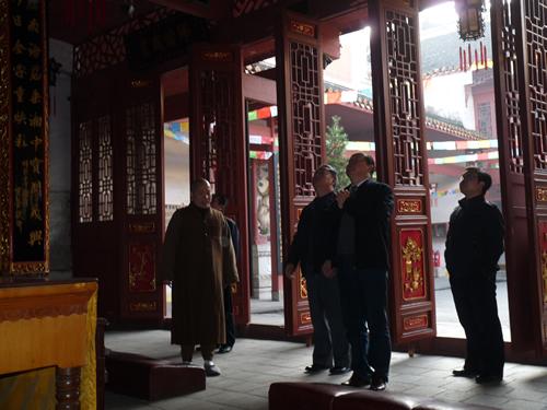 12月6日上午,省宗教局副局长傅雷带领省宗教局一处副处唐志兵等一行来到湘乡云门寺视察指导工作,湘潭市民宗局局长吴岗山和湘乡民宗局局长谭招新陪同视察,并看望方丈法通大和尚。大和尚等热情接待了宗教局领导一行,并陪同参观了主要殿堂,还就云门寺的相关情况作了简要汇报。
