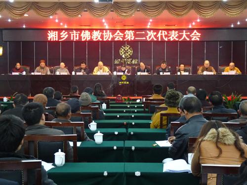 12月6日上午九点半,在湘乡市区的湘乡宾馆四楼会议室圆满召开了湘乡市佛教协会第二届代表大会,本次会议选举产生了以法通大和尚为会长的新一届的领导班子。