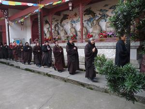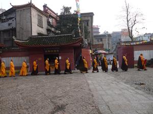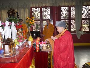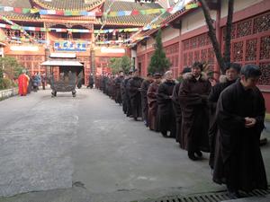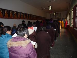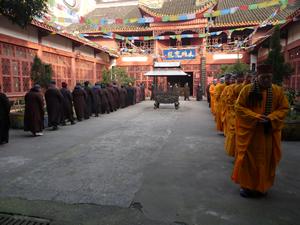 今天是农历十一月十一日,天寒地冻,气温接近零度,值得高兴的是,天公作美,阳光灿烂。云门寺一年一度的冬季佛七法会今天起七,湘潭和湘乡地区的很多居士都冒着严寒来到云门寺参加佛七法会,人气很是兴旺。 本次法会礼请方丈法通大和尚为主七和尚,大和尚非常慈悲,在百忙之中,仍然坚持领众熏修,带领四众弟子精进念佛,既让大众增进道业,同时也为世界和平、人民安居乐业祈福。